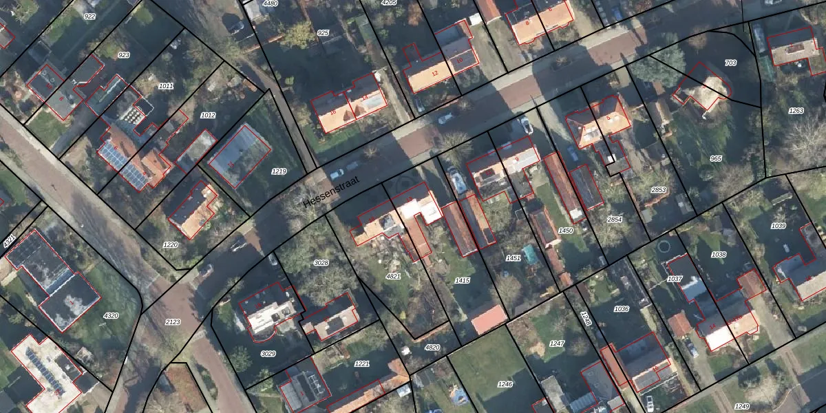 Het perceel waarop Hessenstraat 13 staat heeft een oppervlakte van 625 m². Dit is een groot perceel. De perceeloppervlakte wordt geregistreerd door het Kadaster. Gedetailleerde informatie over de maten van dit perceel kunt u vinden in het rapport Kadastrale kaart met maatvoering van Hessenstraat 13.