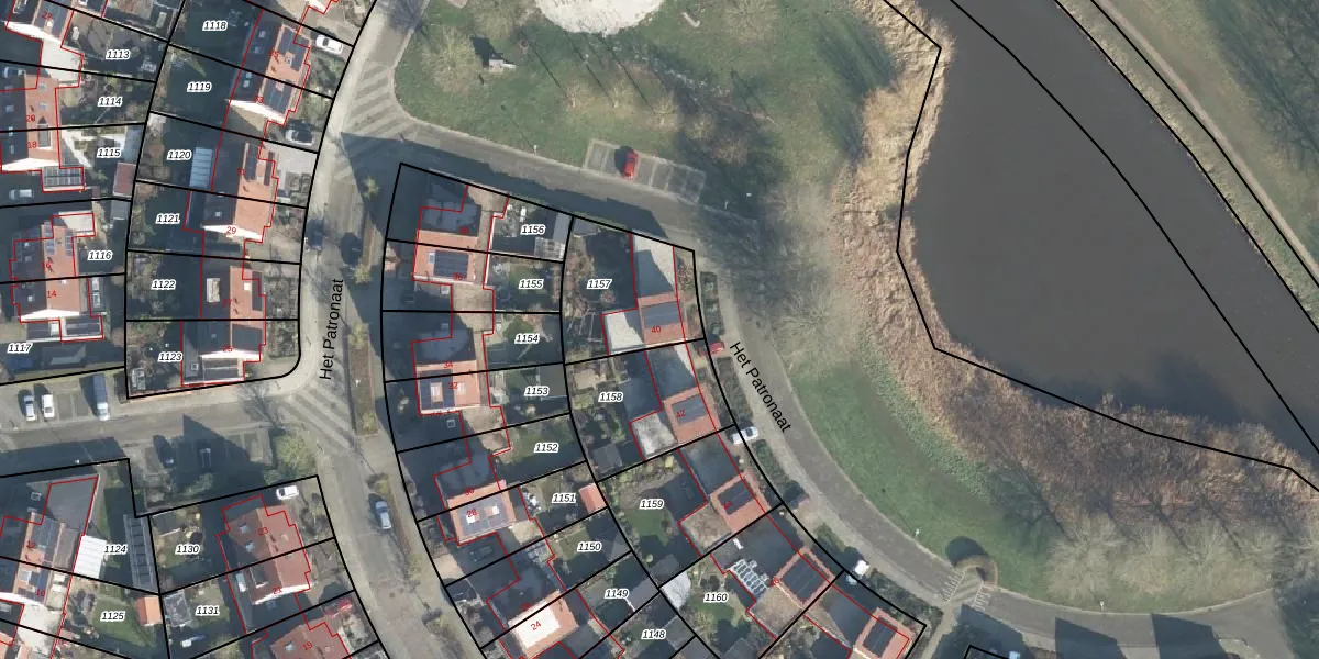 Het perceel waarop Het Patronaat 40 staat heeft een oppervlakte van 369 m². Dit is een groot perceel. De perceeloppervlakte wordt geregistreerd door het Kadaster. Gedetailleerde informatie over de maten van dit perceel kunt u vinden in het rapport Kadastrale kaart met maatvoering van Het Patronaat 40.