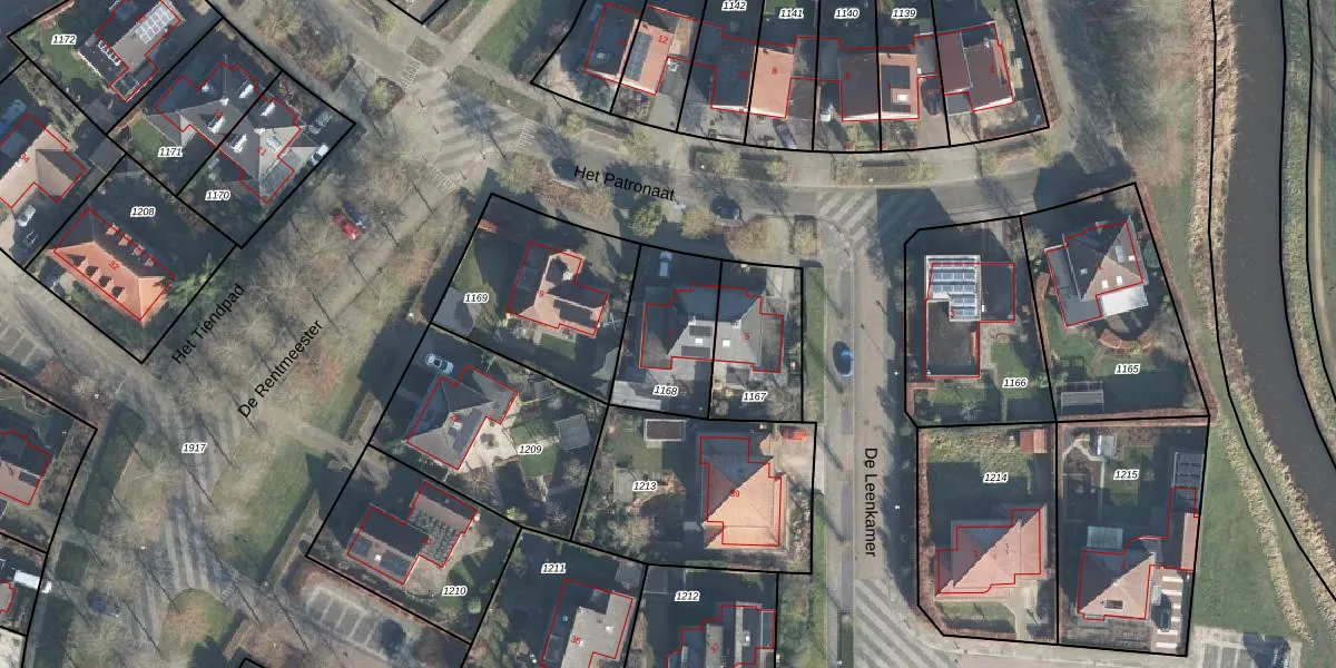 Gebruik de zoekbalk of klik op een perceel voor informatie over de adressen binnen dit perceel.