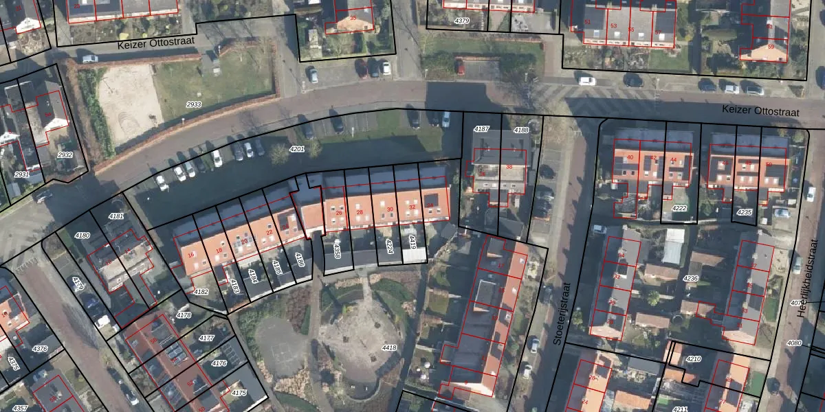 Keizer Ottostraat 32 is gelegen op kadastraal perceel BCL00D4419. Deze kadastrale aanduiding is uniek en wordt gebruikt door het Kadaster om eigendomsrechten en andere zakelijke rechten vast te leggen. Het perceel maakt onderdeel uit van de kadastrale gemeente Borculo.