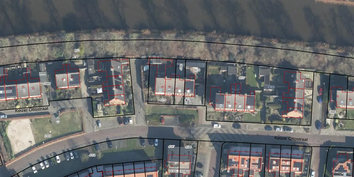 Keizer Ottostraat 47 is gelegen op kadastraal perceel BCL00D4380. Deze kadastrale aanduiding is uniek en wordt gebruikt door het Kadaster om eigendomsrechten en andere zakelijke rechten vast te leggen. Het perceel maakt onderdeel uit van de kadastrale gemeente Borculo.