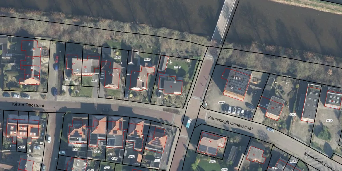 Gebruik de zoekbalk of klik op een perceel voor informatie over de adressen binnen dit perceel.