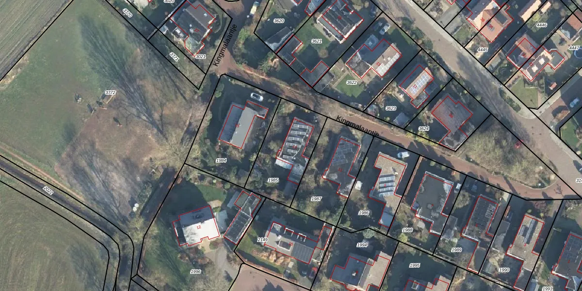 Gebruik de zoekbalk of klik op een perceel voor informatie over de adressen binnen dit perceel.