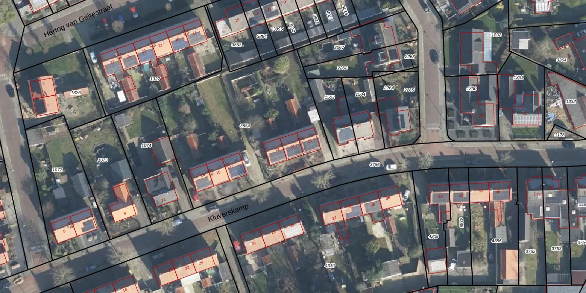 Het perceel waarop Kluverskamp 21 staat heeft een oppervlakte van 2095 m². Dit is een zeer groot perceel. De perceeloppervlakte wordt geregistreerd door het Kadaster. Gedetailleerde informatie over de maten van dit perceel kunt u vinden in het rapport Kadastrale kaart met maatvoering van Kluverskamp 21.