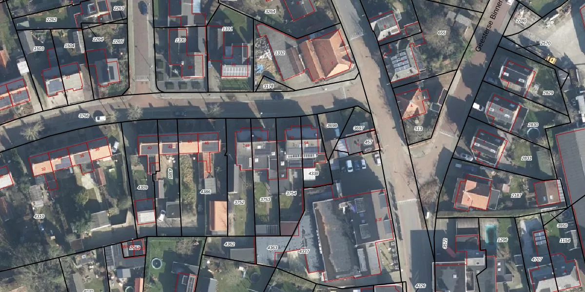 Gebruik de zoekbalk of klik op een perceel voor informatie over de adressen binnen dit perceel.