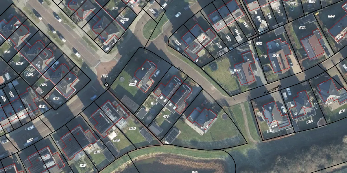 Het perceel waarop Kooweide 4 staat heeft een oppervlakte van 405 m². Dit is een groot perceel. De perceeloppervlakte wordt geregistreerd door het Kadaster. Gedetailleerde informatie over de maten van dit perceel kunt u vinden in het rapport Kadastrale kaart met maatvoering van Kooweide 4.