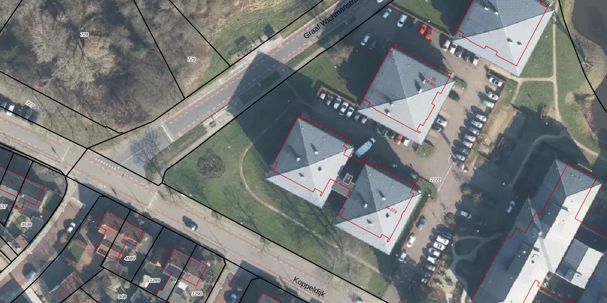 Het perceel waarop Koppeldijk 22-e staat heeft een oppervlakte van 1,5 ha. Dit is een zeer groot perceel. De perceeloppervlakte wordt geregistreerd door het Kadaster. Gedetailleerde informatie over de maten van dit perceel kunt u vinden in het rapport Kadastrale kaart met maatvoering van Koppeldijk 22-e.