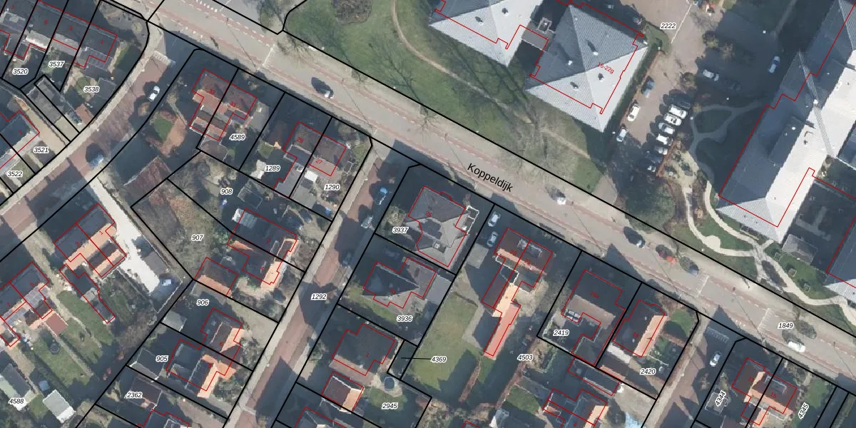 Het perceel waarop Koppeldijk 25 staat heeft een oppervlakte van 411 m². Dit is een groot perceel. De perceeloppervlakte wordt geregistreerd door het Kadaster. Gedetailleerde informatie over de maten van dit perceel kunt u vinden in het rapport Kadastrale kaart met maatvoering van Koppeldijk 25.