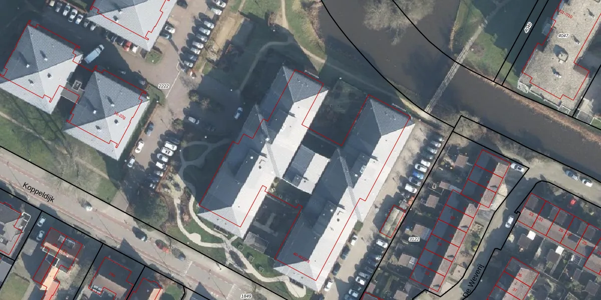 Koppeldijk 40-112 is gelegen op kadastraal perceel BCL00D2222. Deze kadastrale aanduiding is uniek en wordt gebruikt door het Kadaster om eigendomsrechten en andere zakelijke rechten vast te leggen. Het perceel maakt onderdeel uit van de kadastrale gemeente Borculo.