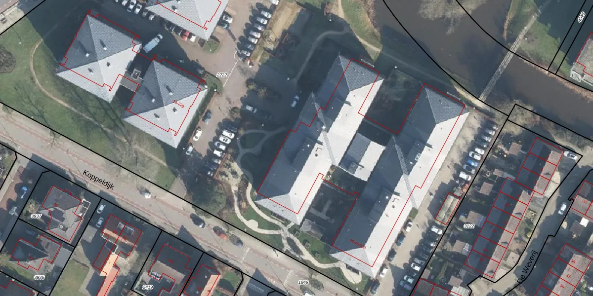 Het perceel waarop Koppeldijk 40-010 staat heeft een oppervlakte van 1,5 ha. Dit is een zeer groot perceel. De perceeloppervlakte wordt geregistreerd door het Kadaster. Gedetailleerde informatie over de maten van dit perceel kunt u vinden in het rapport Kadastrale kaart met maatvoering van Koppeldijk 40-010.