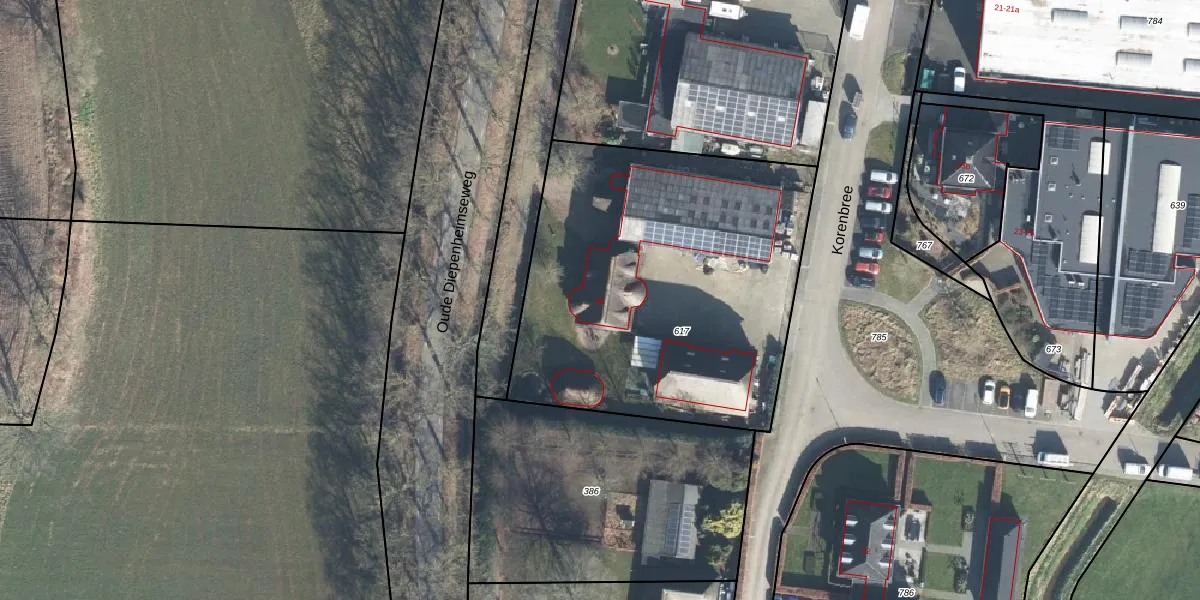 Korenbree 48 is gelegen op kadastraal perceel GTR00L617. Deze kadastrale aanduiding is uniek en wordt gebruikt door het Kadaster om eigendomsrechten en andere zakelijke rechten vast te leggen. Het perceel maakt onderdeel uit van de kadastrale gemeente Geesteren.