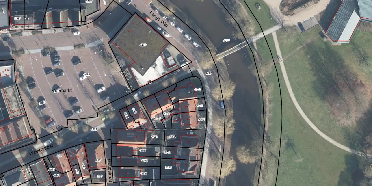 Het perceel waarop Lange Wal 8 staat heeft een oppervlakte van 180 m². Dit is een middelgroot perceel. De perceeloppervlakte wordt geregistreerd door het Kadaster. Gedetailleerde informatie over de maten van dit perceel kunt u vinden in het rapport Kadastrale kaart met maatvoering van Lange Wal 8.