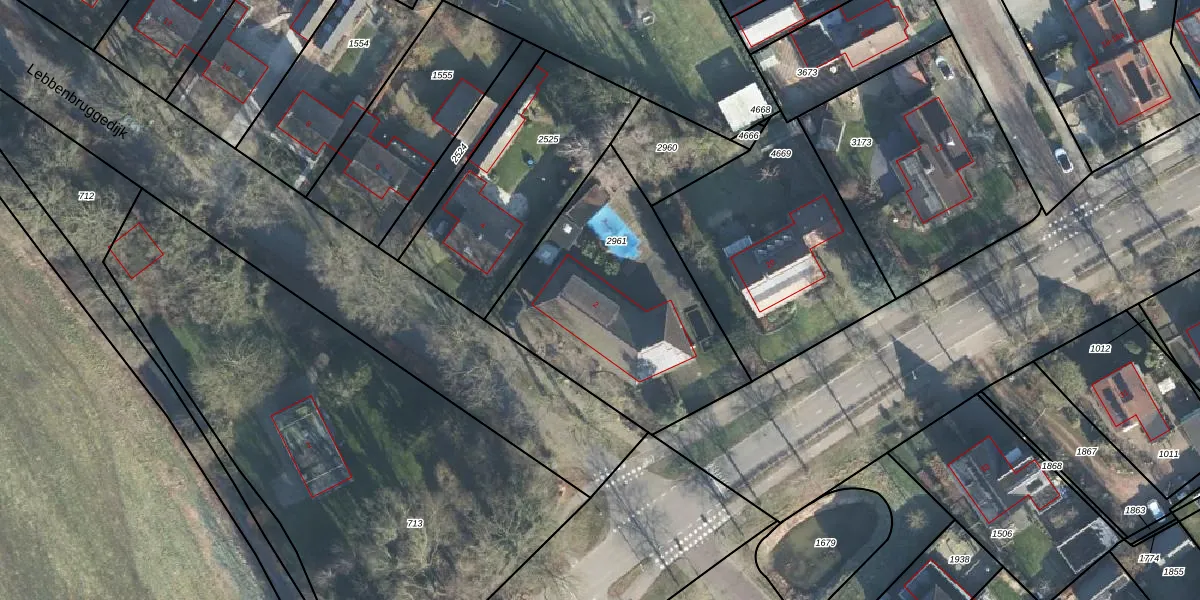 Het perceel waarop Lebbenbruggedijk 2 staat heeft een oppervlakte van 1100 m². Dit is een zeer groot perceel. De perceeloppervlakte wordt geregistreerd door het Kadaster. Gedetailleerde informatie over de maten van dit perceel kunt u vinden in het rapport Kadastrale kaart met maatvoering van Lebbenbruggedijk 2.