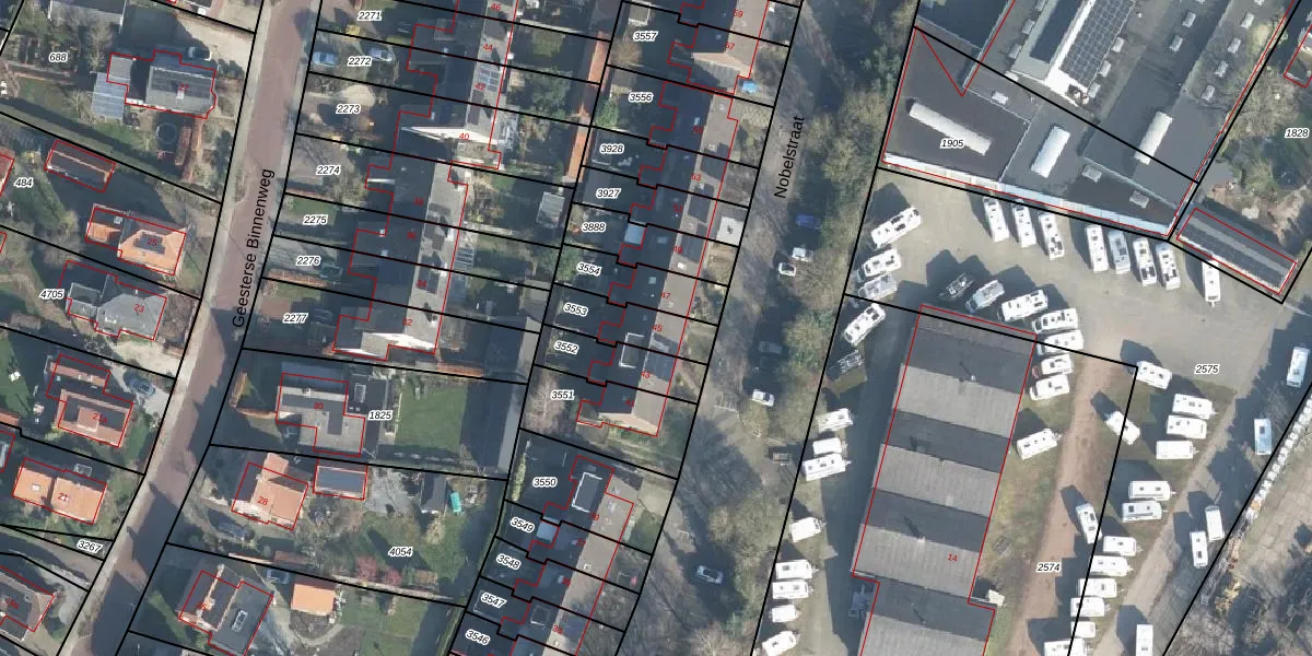 Het perceel waarop Nobelstraat 45 staat heeft een oppervlakte van 164 m². Dit is een middelgroot perceel. De perceeloppervlakte wordt geregistreerd door het Kadaster. Gedetailleerde informatie over de maten van dit perceel kunt u vinden in het rapport Kadastrale kaart met maatvoering van Nobelstraat 45.