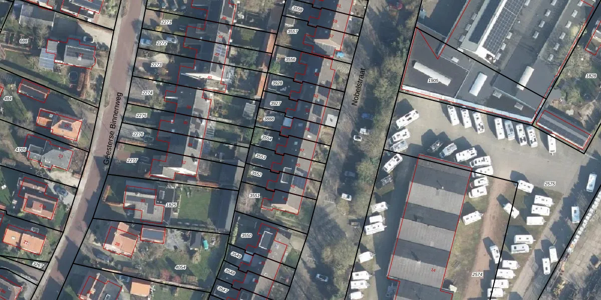 Het perceel waarop Nobelstraat 47 staat heeft een oppervlakte van 164 m². Dit is een middelgroot perceel. De perceeloppervlakte wordt geregistreerd door het Kadaster. Gedetailleerde informatie over de maten van dit perceel kunt u vinden in het rapport Kadastrale kaart met maatvoering van Nobelstraat 47.