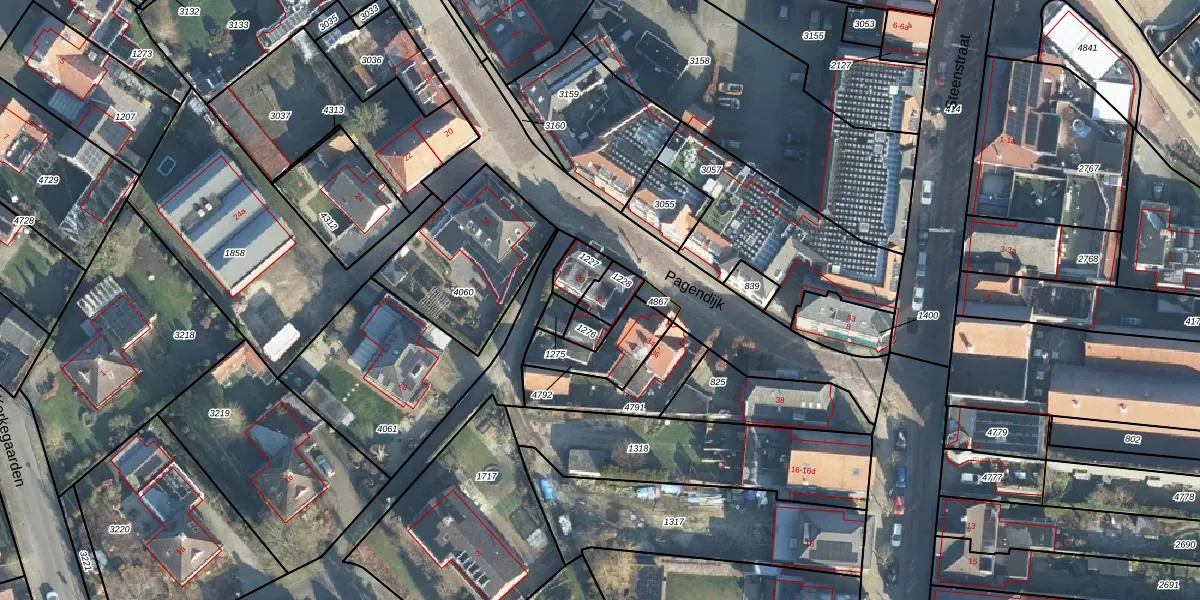 Het perceel waarop Pagendijk 32 staat heeft een oppervlakte van 62 m². Dit is een klein perceel. De perceeloppervlakte wordt geregistreerd door het Kadaster. Gedetailleerde informatie over de maten van dit perceel kunt u vinden in het rapport Kadastrale kaart met maatvoering van Pagendijk 32.