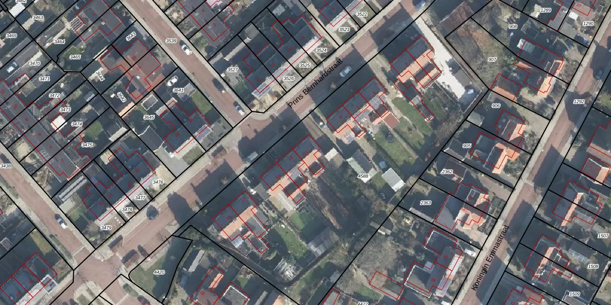 Het perceel waarop Prins Bernhardstraat 11 staat heeft een oppervlakte van 4573 m². Dit is een zeer groot perceel. De perceeloppervlakte wordt geregistreerd door het Kadaster. Gedetailleerde informatie over de maten van dit perceel kunt u vinden in het rapport Kadastrale kaart met maatvoering van Prins Bernhardstraat 11.
