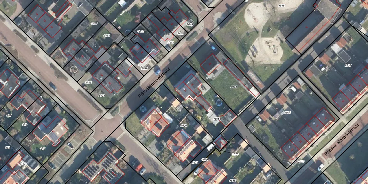Het perceel waarop Prins Bernhardstraat 27 staat heeft een oppervlakte van 740 m². Dit is een groot perceel. De perceeloppervlakte wordt geregistreerd door het Kadaster. Gedetailleerde informatie over de maten van dit perceel kunt u vinden in het rapport Kadastrale kaart met maatvoering van Prins Bernhardstraat 27.