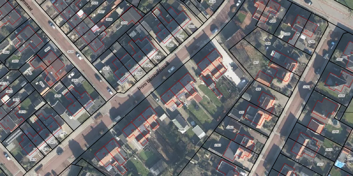 Het perceel waarop Prins Bernhardstraat 7 staat heeft een oppervlakte van 4573 m². Dit is een zeer groot perceel. De perceeloppervlakte wordt geregistreerd door het Kadaster. Gedetailleerde informatie over de maten van dit perceel kunt u vinden in het rapport Kadastrale kaart met maatvoering van Prins Bernhardstraat 7.
