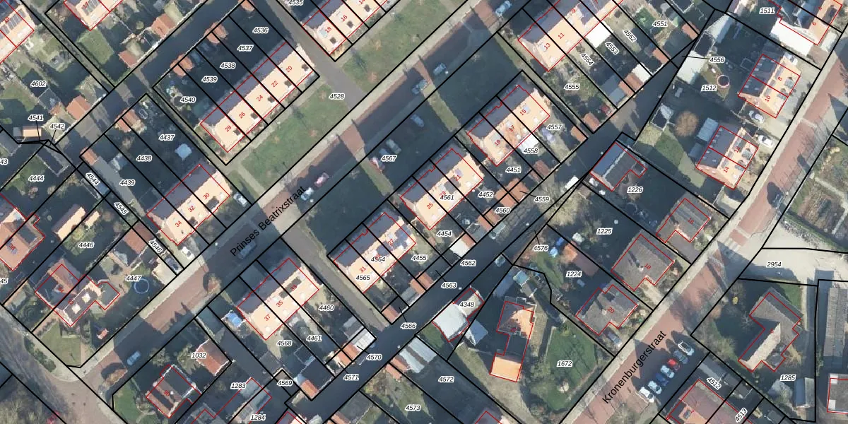 Gebruik de zoekbalk of klik op een perceel voor informatie over de adressen binnen dit perceel.