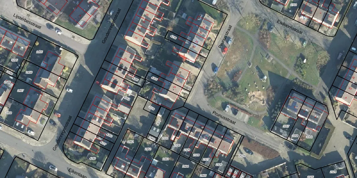 Het perceel waarop Prunusstraat 15 staat heeft een oppervlakte van 125 m². Dit is een middelgroot perceel. De perceeloppervlakte wordt geregistreerd door het Kadaster. Gedetailleerde informatie over de maten van dit perceel kunt u vinden in het rapport Kadastrale kaart met maatvoering van Prunusstraat 15.