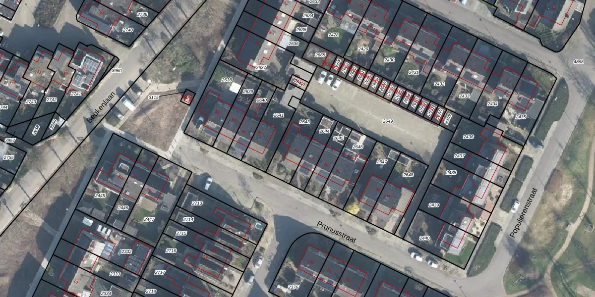 Gebruik de zoekbalk of klik op een perceel voor informatie over de adressen binnen dit perceel.