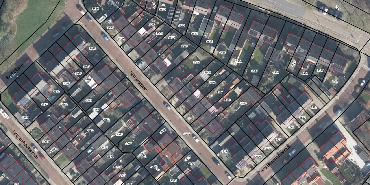 Gebruik de zoekbalk of klik op een perceel voor informatie over de adressen binnen dit perceel.