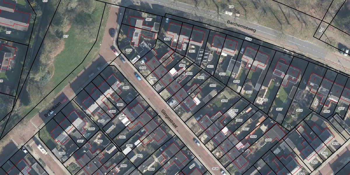 Gebruik de zoekbalk of klik op een perceel voor informatie over de adressen binnen dit perceel.