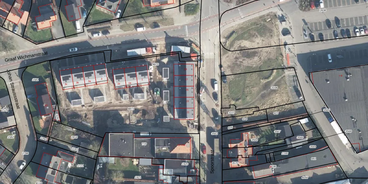 Het perceel waarop Spoorstraat 25 staat heeft een oppervlakte van 3143 m². Dit is een zeer groot perceel. De perceeloppervlakte wordt geregistreerd door het Kadaster. Gedetailleerde informatie over de maten van dit perceel kunt u vinden in het rapport Kadastrale kaart met maatvoering van Spoorstraat 25.
