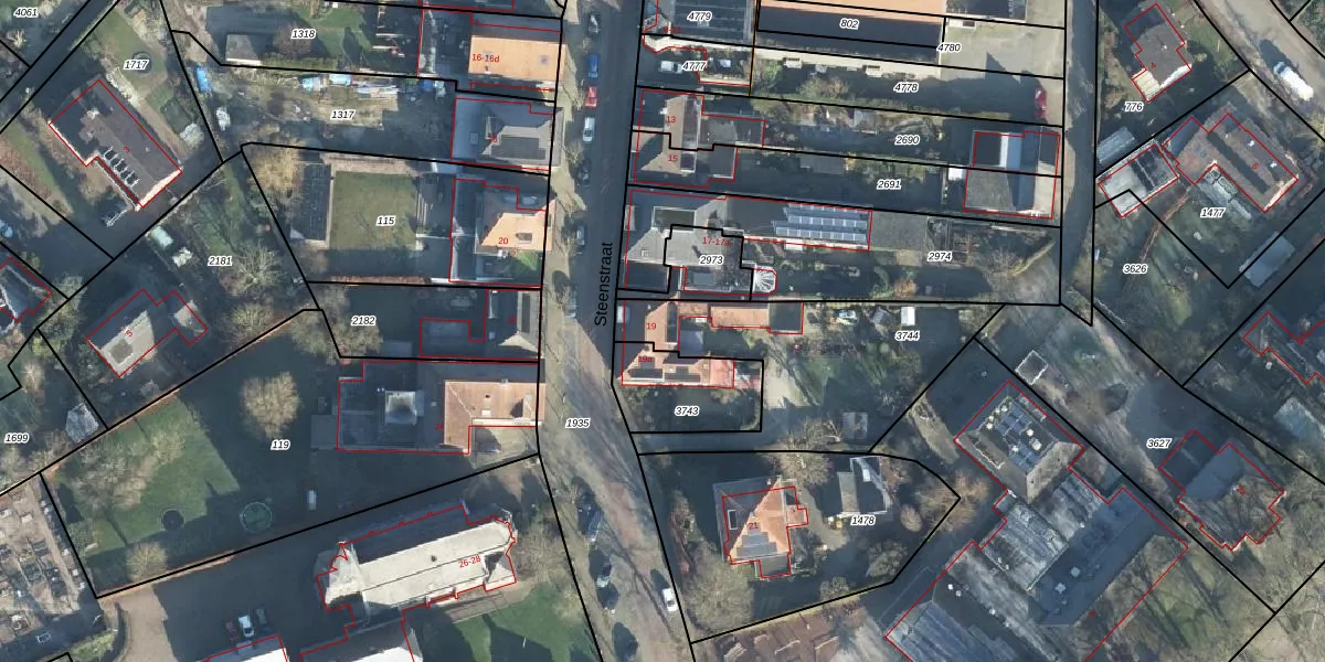 Het perceel waarop Steenstraat 19 staat heeft een oppervlakte van 800 m². Dit is een groot perceel. De perceeloppervlakte wordt geregistreerd door het Kadaster. Gedetailleerde informatie over de maten van dit perceel kunt u vinden in het rapport Kadastrale kaart met maatvoering van Steenstraat 19.