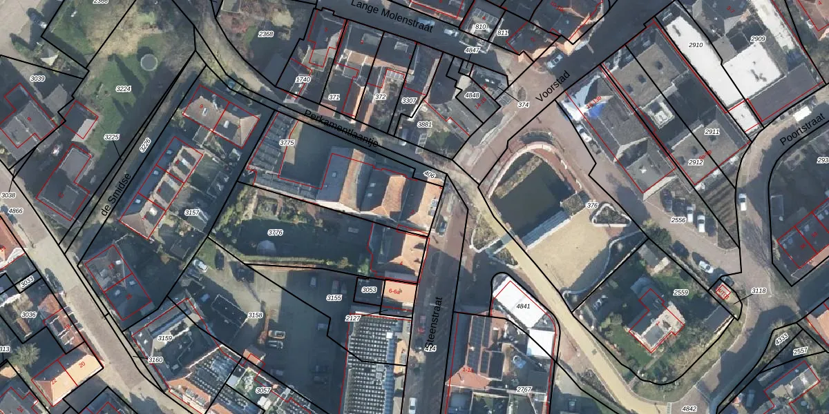 Gebruik de zoekbalk of klik op een perceel voor informatie over de adressen binnen dit perceel.