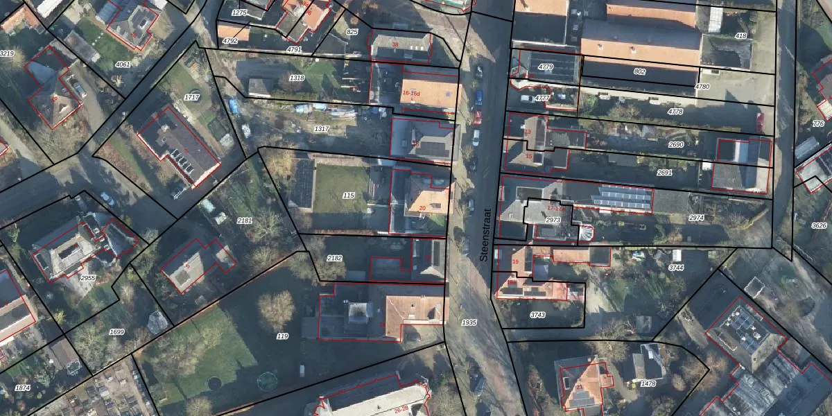 Gebruik de zoekbalk of klik op een perceel voor informatie over de adressen binnen dit perceel.