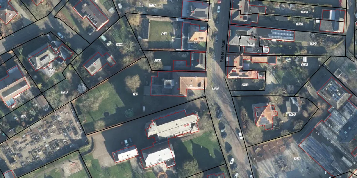 Het perceel waarop Steenstraat 24 staat heeft een oppervlakte van 1740 m². Dit is een zeer groot perceel. De perceeloppervlakte wordt geregistreerd door het Kadaster. Gedetailleerde informatie over de maten van dit perceel kunt u vinden in het rapport Kadastrale kaart met maatvoering van Steenstraat 24.
