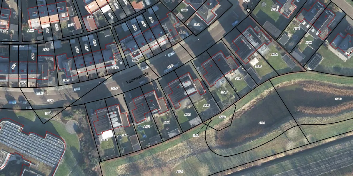 Gebruik de zoekbalk of klik op een perceel voor informatie over de adressen binnen dit perceel.