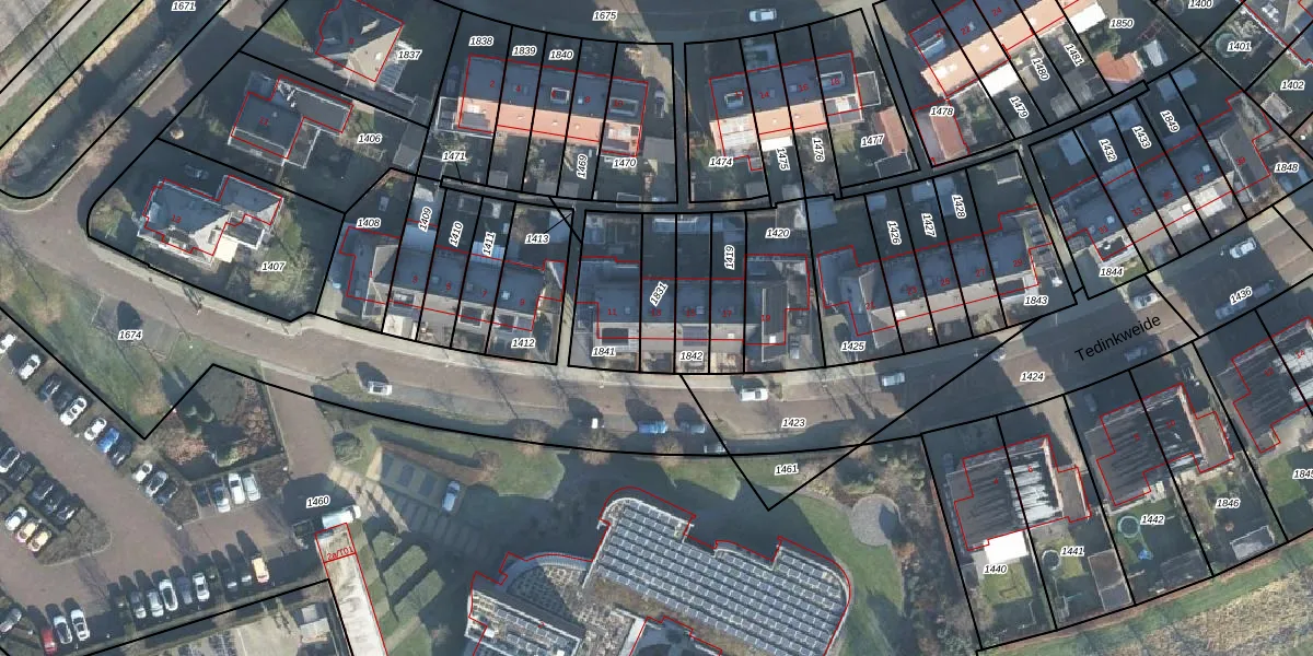 Tedinkweide 13 is gelegen op kadastraal perceel BCL00F1831. Deze kadastrale aanduiding is uniek en wordt gebruikt door het Kadaster om eigendomsrechten en andere zakelijke rechten vast te leggen. Het perceel maakt onderdeel uit van de kadastrale gemeente Borculo.