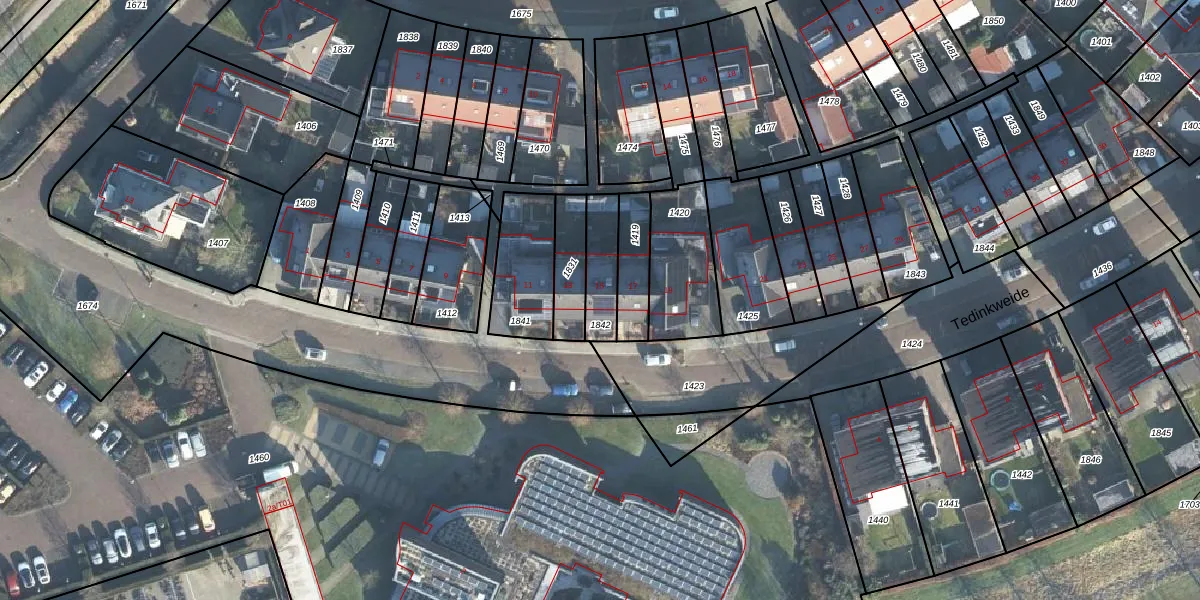 Het perceel waarop Tedinkweide 15 staat heeft een oppervlakte van 134 m². Dit is een middelgroot perceel. De perceeloppervlakte wordt geregistreerd door het Kadaster. Gedetailleerde informatie over de maten van dit perceel kunt u vinden in het rapport Kadastrale kaart met maatvoering van Tedinkweide 15.
