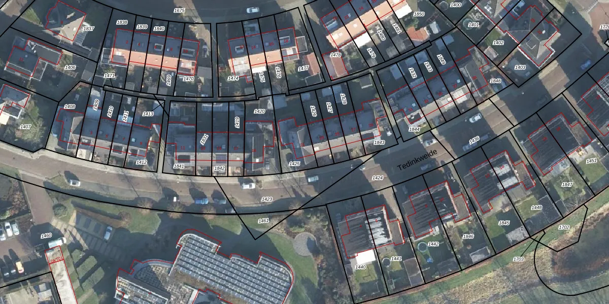 Tedinkweide 21 is gelegen op kadastraal perceel BCL00F1425. Deze kadastrale aanduiding is uniek en wordt gebruikt door het Kadaster om eigendomsrechten en andere zakelijke rechten vast te leggen. Het perceel maakt onderdeel uit van de kadastrale gemeente Borculo.
