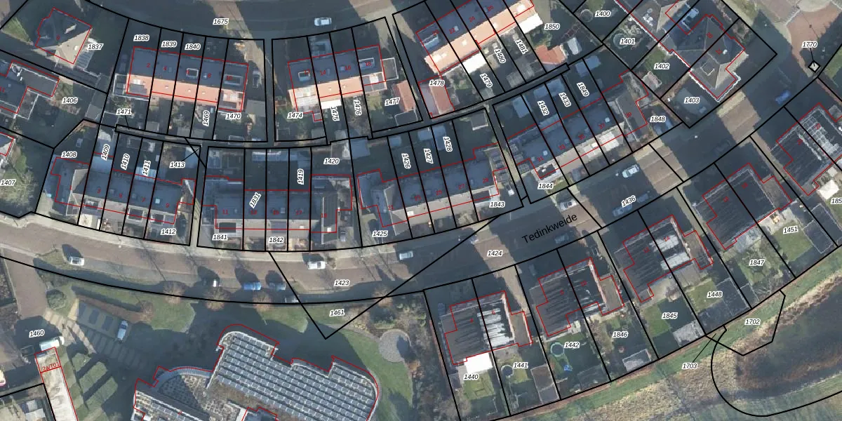 Het perceel waarop Tedinkweide 23 staat heeft een oppervlakte van 137 m². Dit is een middelgroot perceel. De perceeloppervlakte wordt geregistreerd door het Kadaster. Gedetailleerde informatie over de maten van dit perceel kunt u vinden in het rapport Kadastrale kaart met maatvoering van Tedinkweide 23.