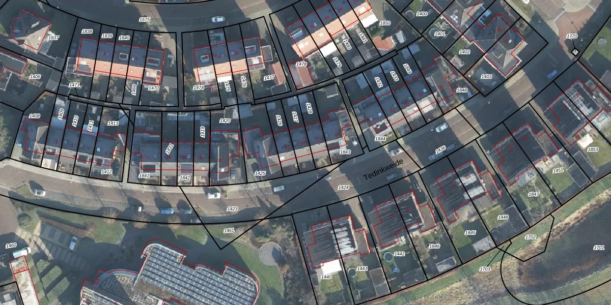 Gebruik de zoekbalk of klik op een perceel voor informatie over de adressen binnen dit perceel.