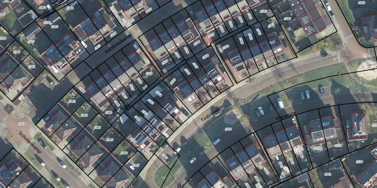 Gebruik de zoekbalk of klik op een perceel voor informatie over de adressen binnen dit perceel.