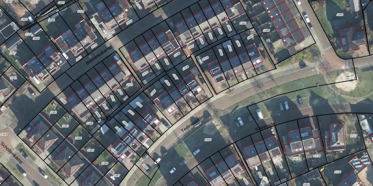 Tedinkweide 55 is gelegen op kadastraal perceel BCL00F1557. Deze kadastrale aanduiding is uniek en wordt gebruikt door het Kadaster om eigendomsrechten en andere zakelijke rechten vast te leggen. Het perceel maakt onderdeel uit van de kadastrale gemeente Borculo.