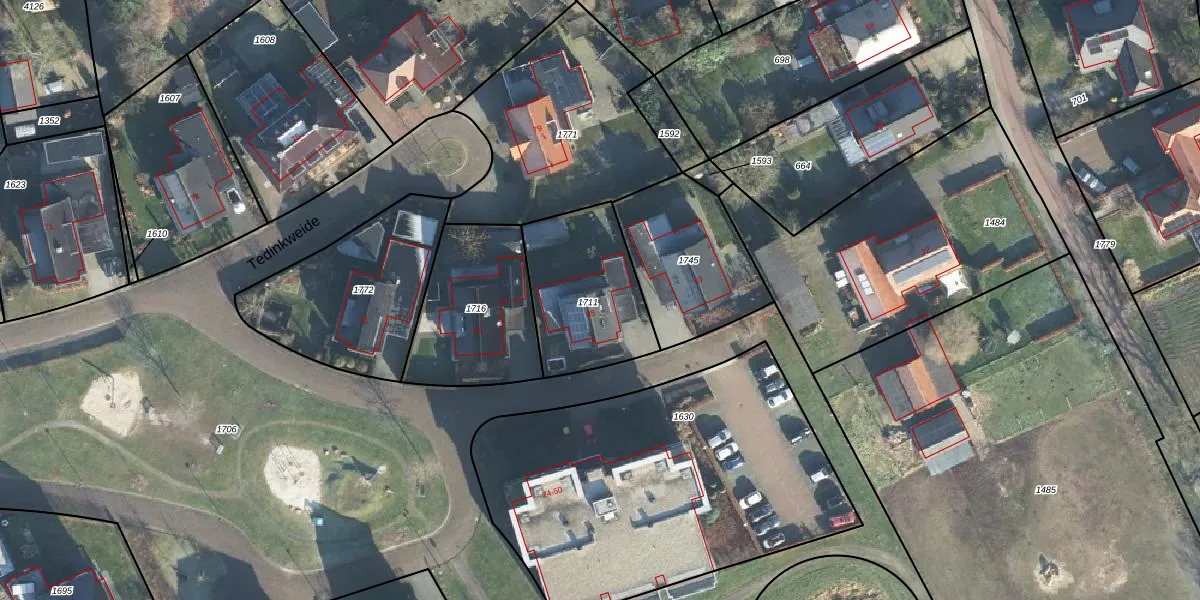 Het perceel waarop Tedinkweide 85 staat heeft een oppervlakte van 470 m². Dit is een groot perceel. De perceeloppervlakte wordt geregistreerd door het Kadaster. Gedetailleerde informatie over de maten van dit perceel kunt u vinden in het rapport Kadastrale kaart met maatvoering van Tedinkweide 85.
