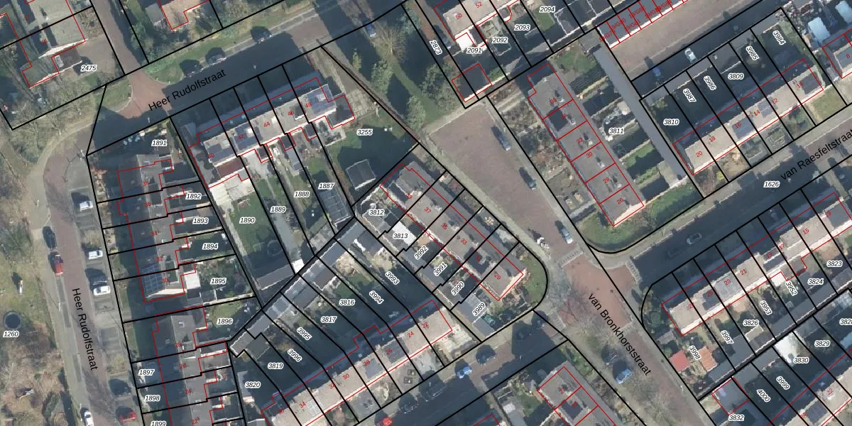 Gebruik de zoekbalk of klik op een perceel voor informatie over de adressen binnen dit perceel.