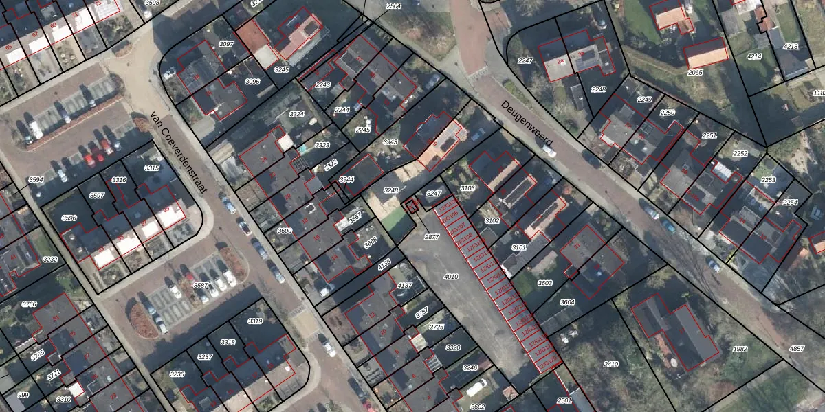 van Coeverdenstraat 12-a-T01 is gelegen op kadastraal perceel BCL00D2877. Deze kadastrale aanduiding is uniek en wordt gebruikt door het Kadaster om eigendomsrechten en andere zakelijke rechten vast te leggen. Het perceel maakt onderdeel uit van de kadastrale gemeente Borculo.