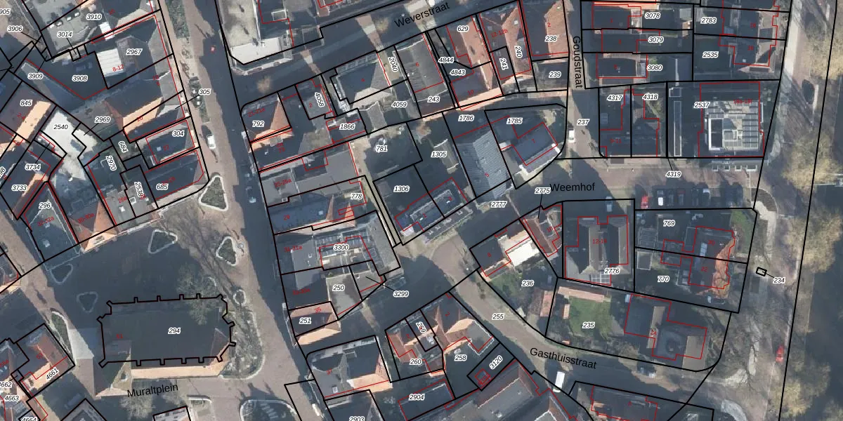 Het perceel waarop Weemhof 1 staat heeft een oppervlakte van 172 m². Dit is een middelgroot perceel. De perceeloppervlakte wordt geregistreerd door het Kadaster. Gedetailleerde informatie over de maten van dit perceel kunt u vinden in het rapport Kadastrale kaart met maatvoering van Weemhof 1.