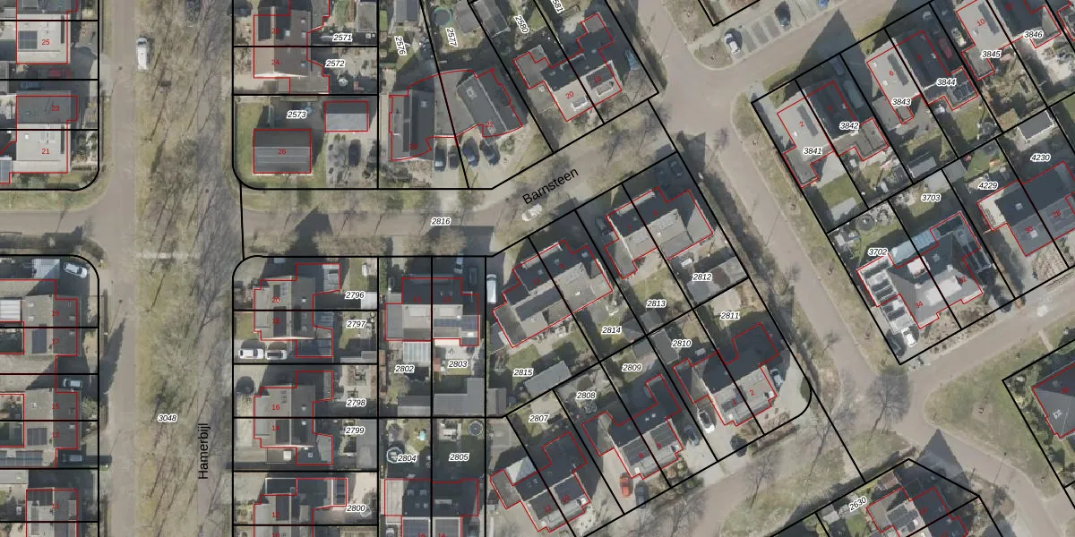 Het perceel waarop Barnsteen 11 staat heeft een oppervlakte van 449 m². Dit is een groot perceel. De perceeloppervlakte wordt geregistreerd door het Kadaster. Gedetailleerde informatie over de maten van dit perceel kunt u vinden in het rapport Kadastrale kaart met maatvoering van Barnsteen 11.
