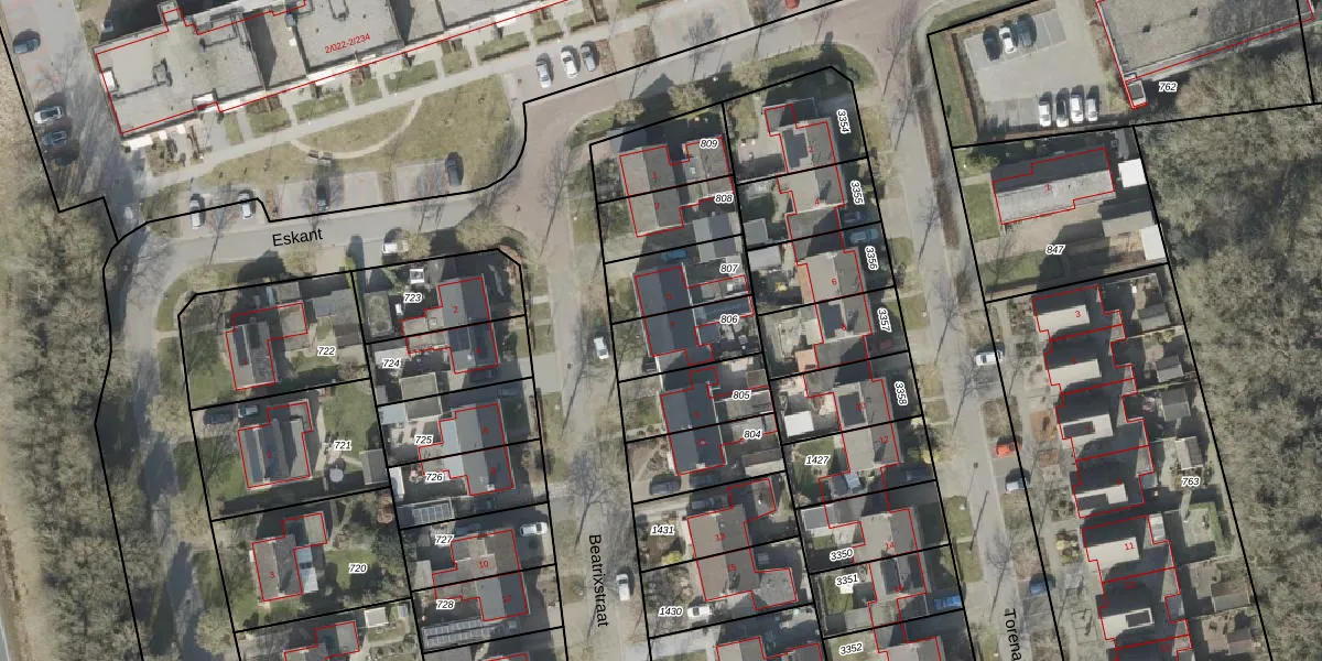 Het perceel waarop Beatrixstraat 7 staat heeft een oppervlakte van 203 m². Dit is een middelgroot perceel. De perceeloppervlakte wordt geregistreerd door het Kadaster. Gedetailleerde informatie over de maten van dit perceel kunt u vinden in het rapport Kadastrale kaart met maatvoering van Beatrixstraat 7.