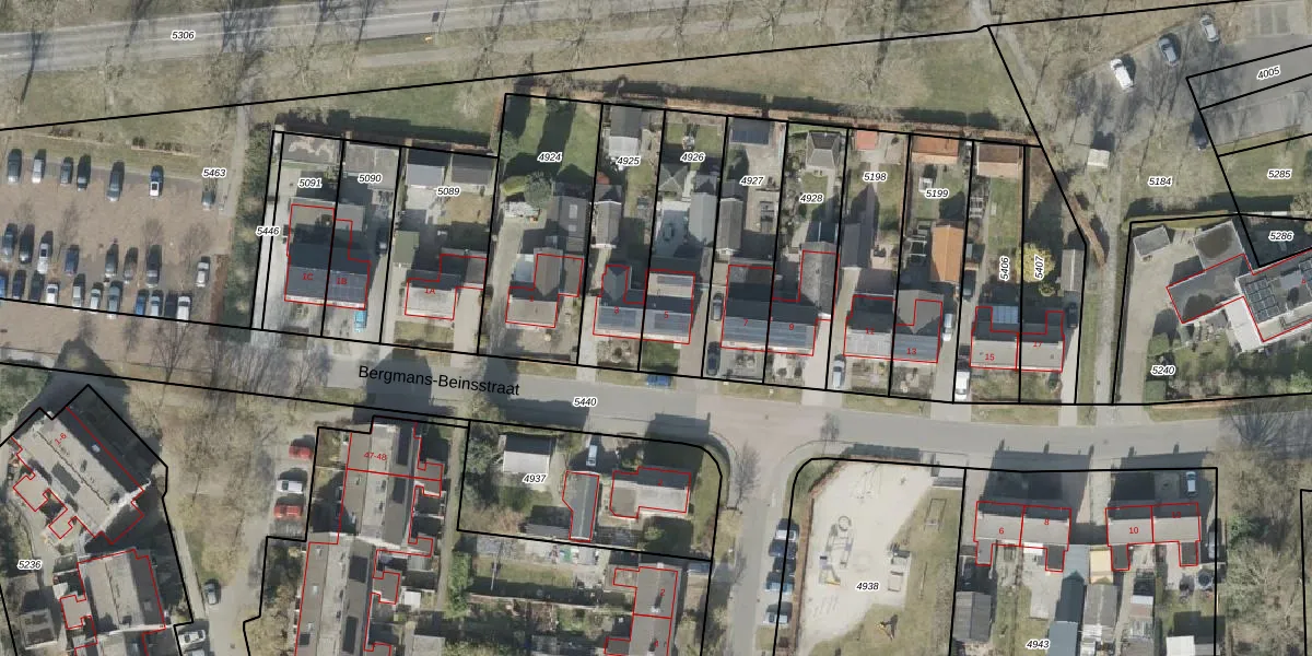 Het perceel waarop Bergmans-Beinsstraat 5 staat heeft een oppervlakte van 379 m². Dit is een groot perceel. De perceeloppervlakte wordt geregistreerd door het Kadaster. Gedetailleerde informatie over de maten van dit perceel kunt u vinden in het rapport Kadastrale kaart met maatvoering van Bergmans-Beinsstraat 5.