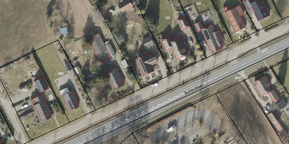 Het perceel waarop Buinerstraat 31 staat heeft een oppervlakte van 1620 m². Dit is een zeer groot perceel. De perceeloppervlakte wordt geregistreerd door het Kadaster. Gedetailleerde informatie over de maten van dit perceel kunt u vinden in het rapport Kadastrale kaart met maatvoering van Buinerstraat 31.