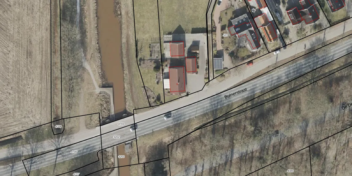 Het perceel waarop Buinerstraat 5 staat heeft een oppervlakte van 2958 m². Dit is een zeer groot perceel. De perceeloppervlakte wordt geregistreerd door het Kadaster. Gedetailleerde informatie over de maten van dit perceel kunt u vinden in het rapport Kadastrale kaart met maatvoering van Buinerstraat 5.